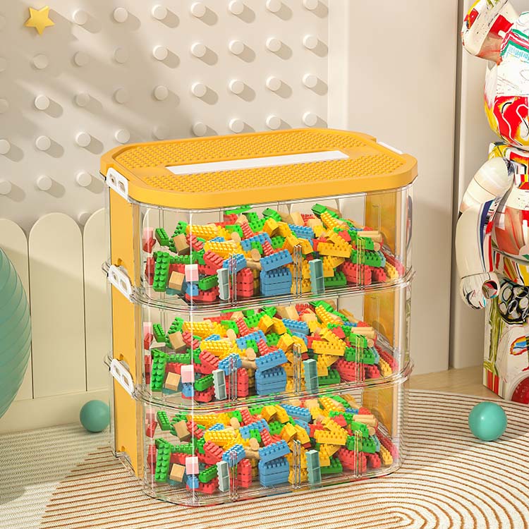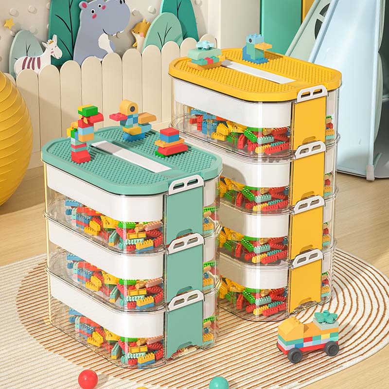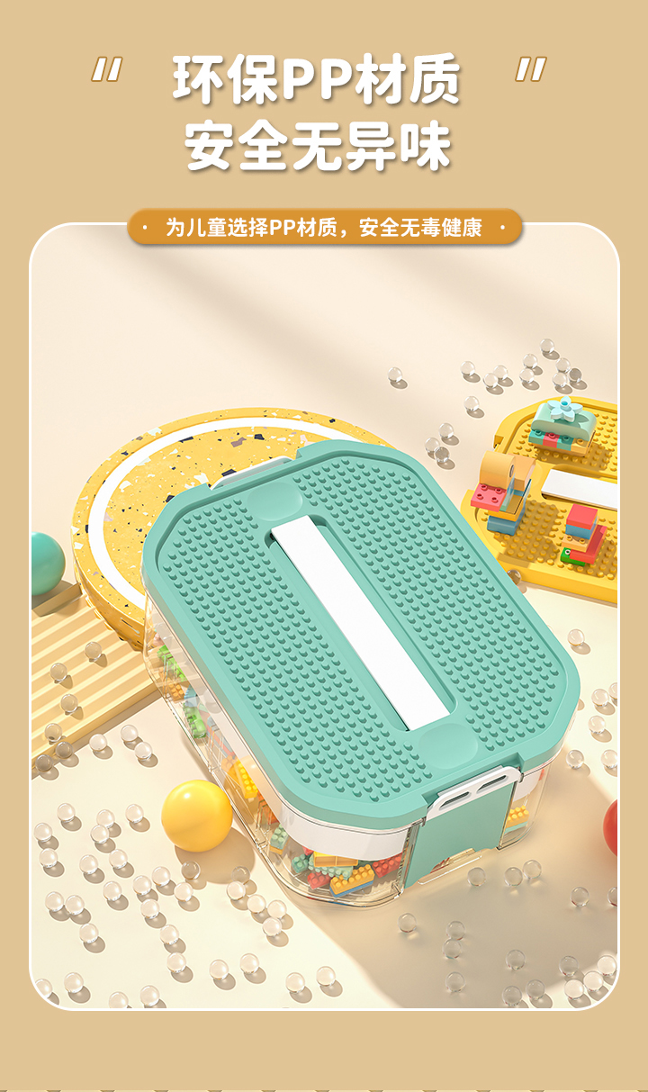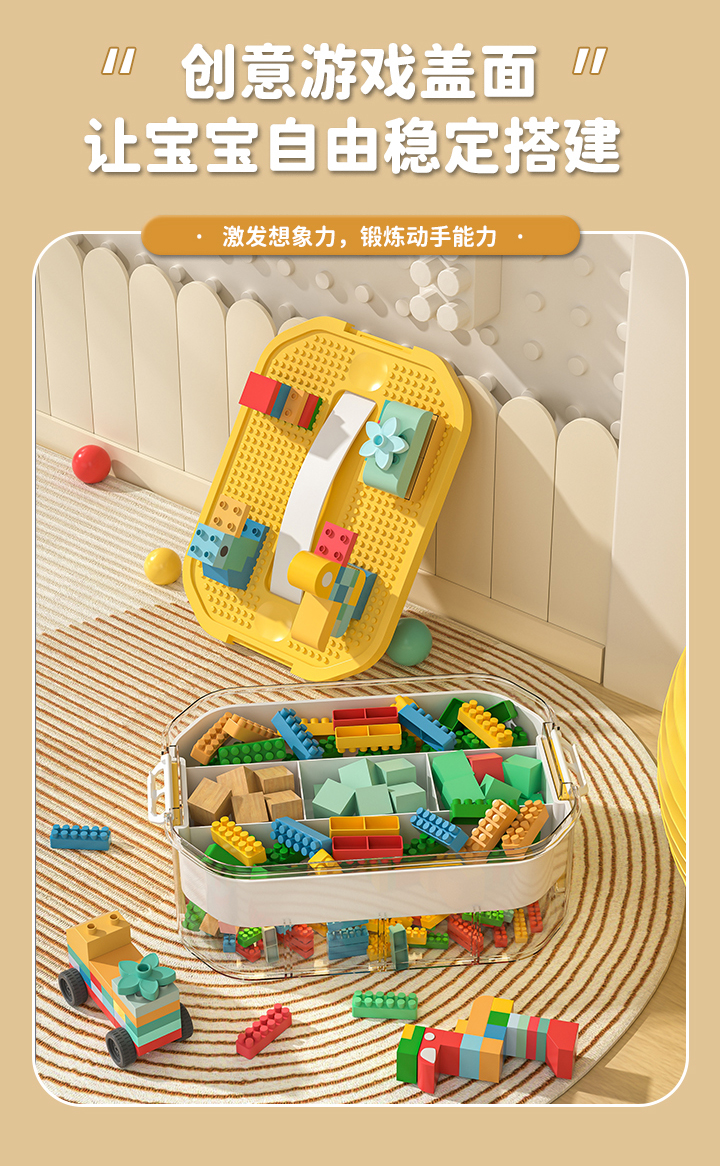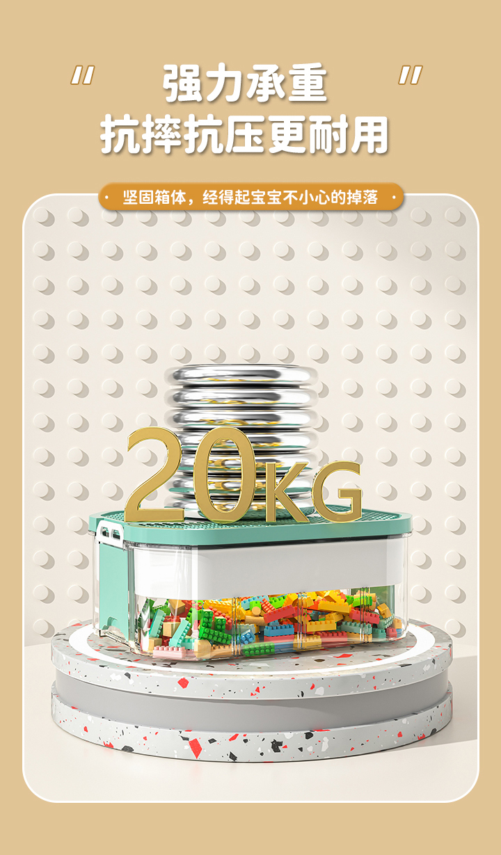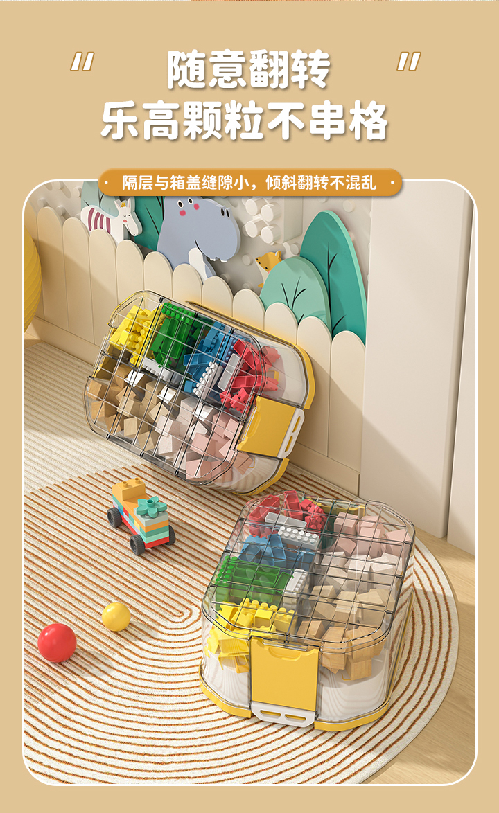 Building block storage box with child-friendly Lego design to help develop storage habits. Features a creative top cover / Lego design / multi-purpose in one box.