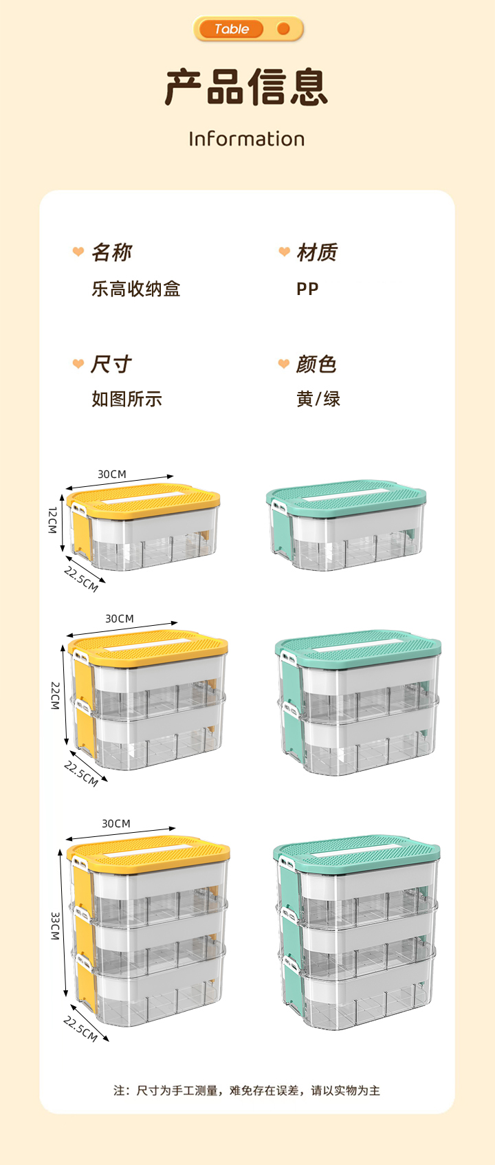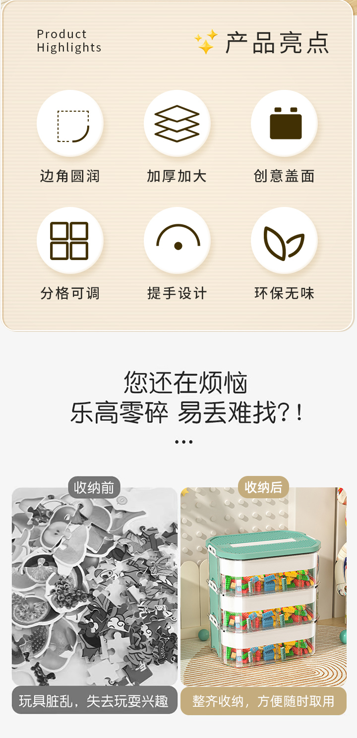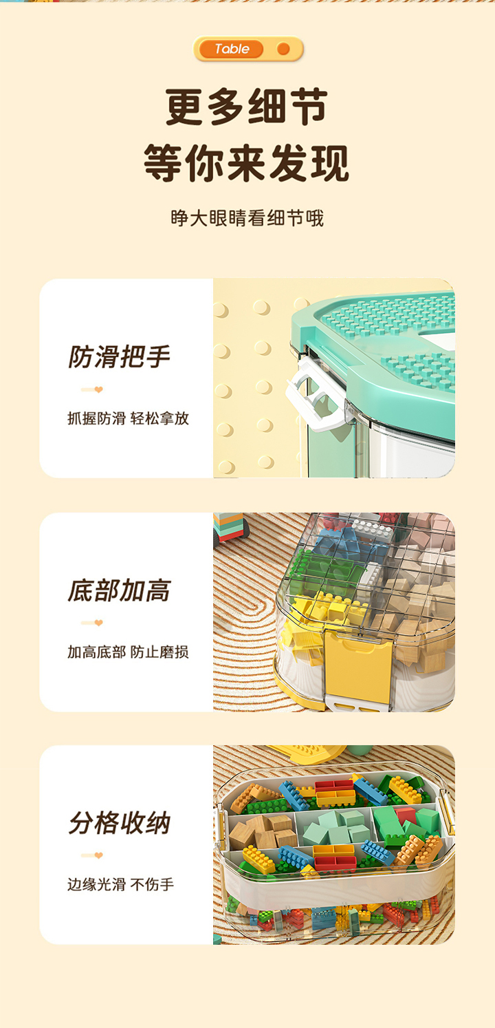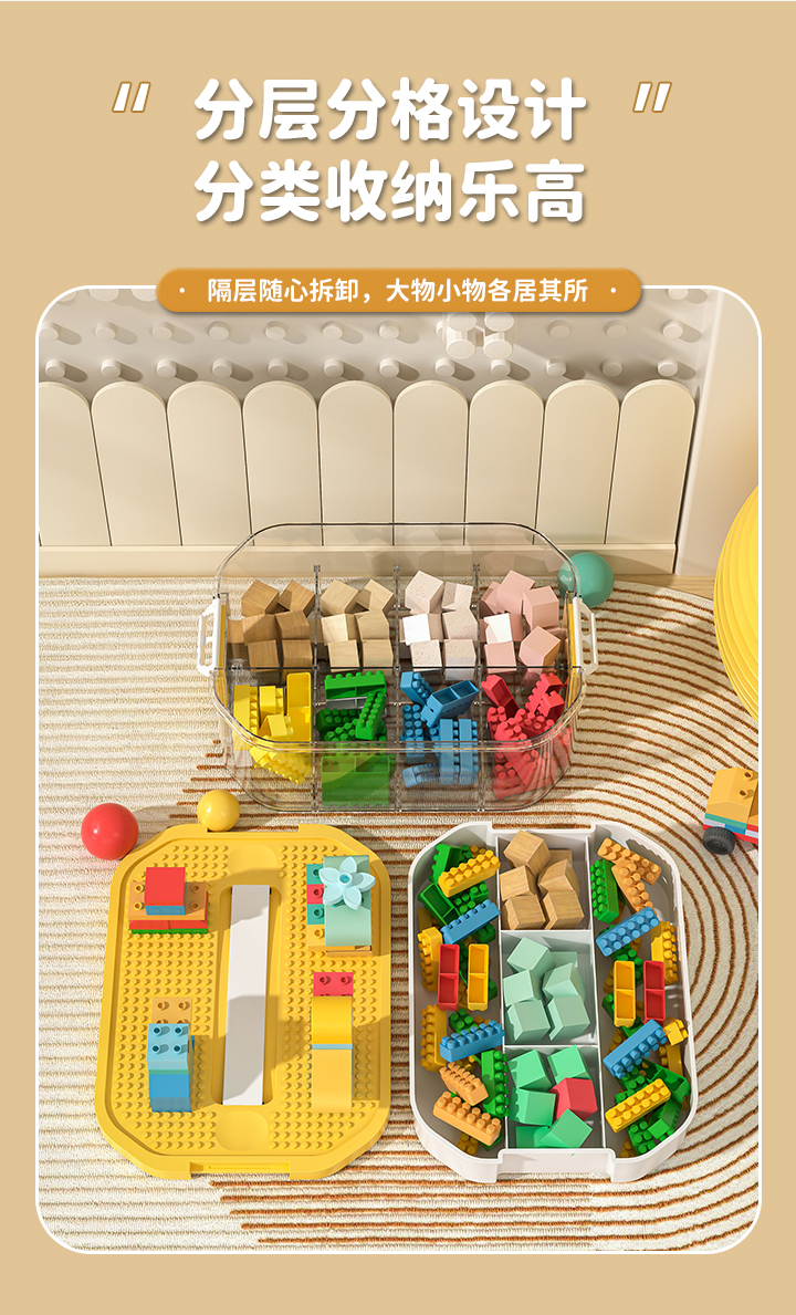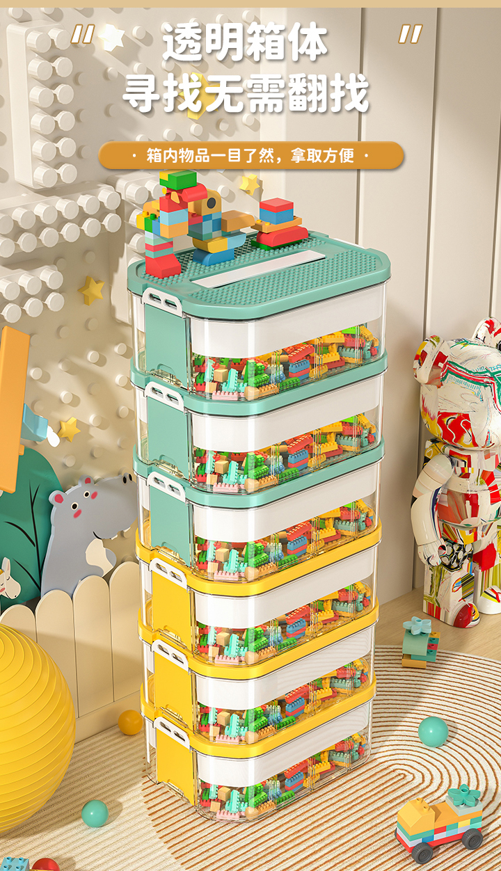 Building block storage box with child-friendly Lego design to help develop storage habits. Features a creative top cover / Lego design / multi-purpose in one box.