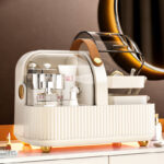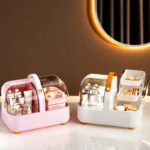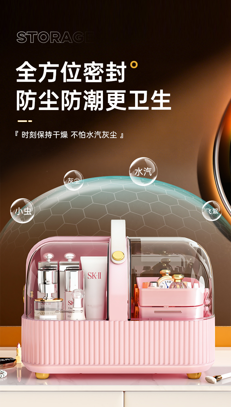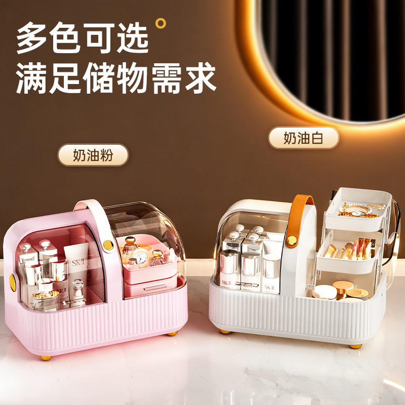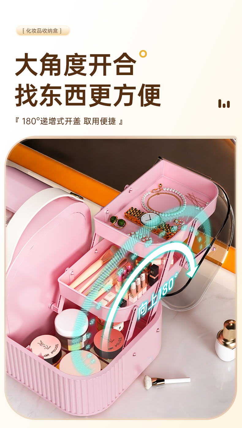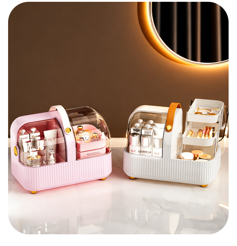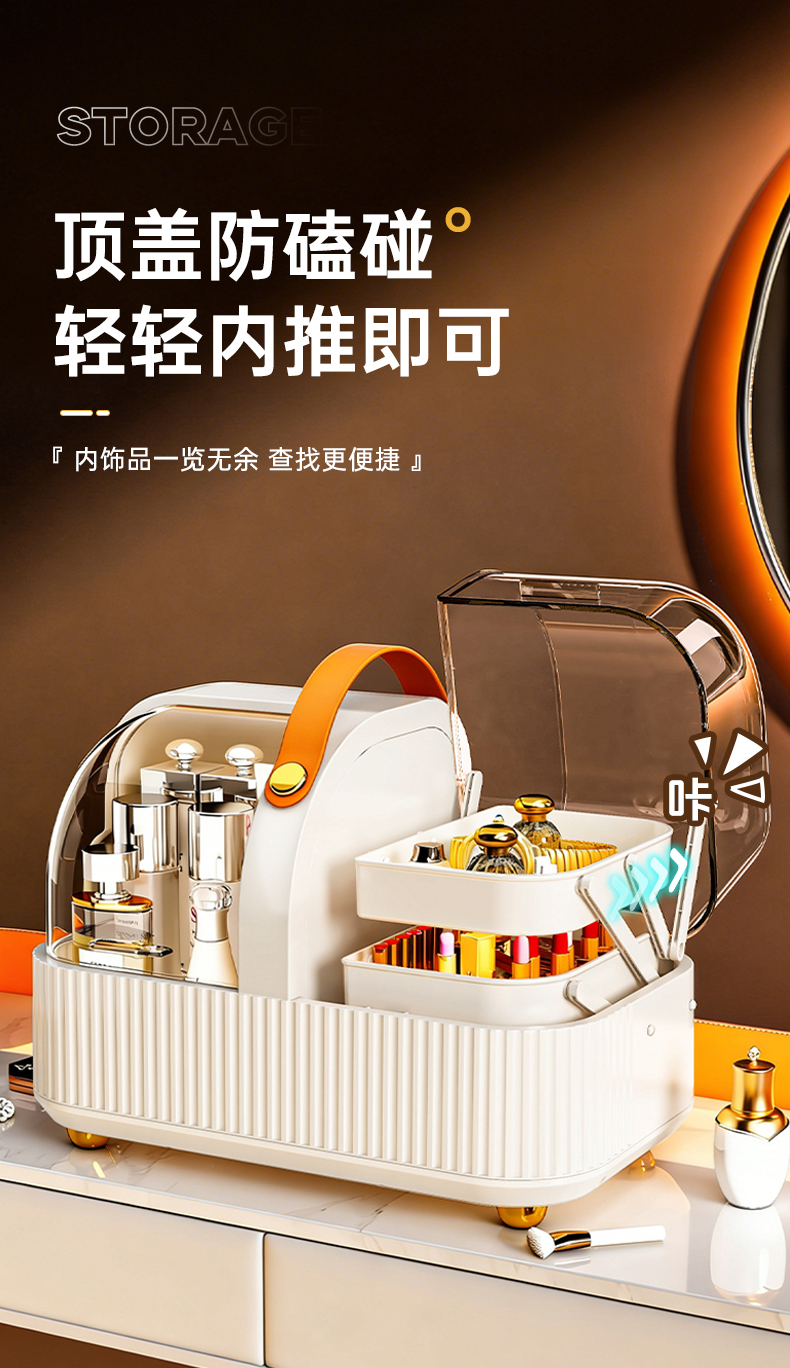 Luxury-simplified cosmetic storage upgrade – Large capacity – Simple organization to elevate your lifestyle. Six highlights: Transparent visibility, large storage capacity, diverse storage options, selected materials, layered storage, strong load-bearing capacity. Solve the storage problem with just one box, instantly saving space on your desk.