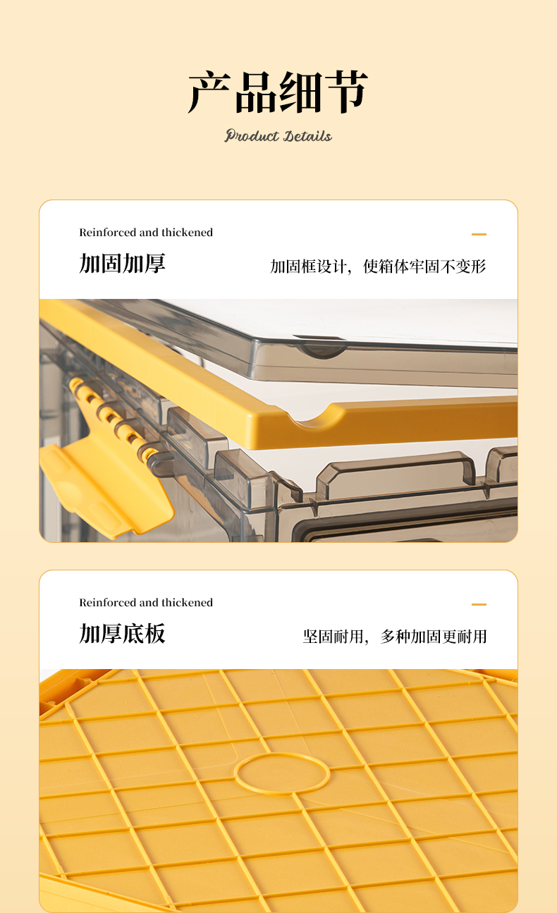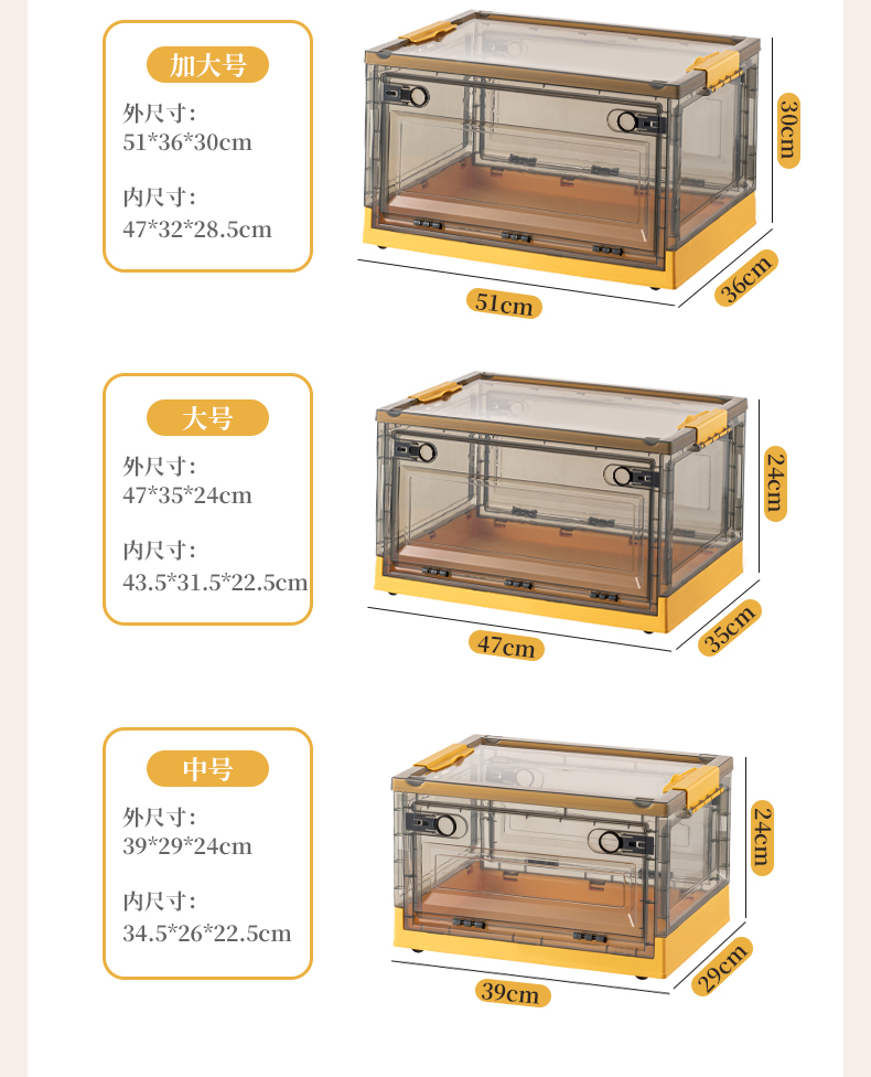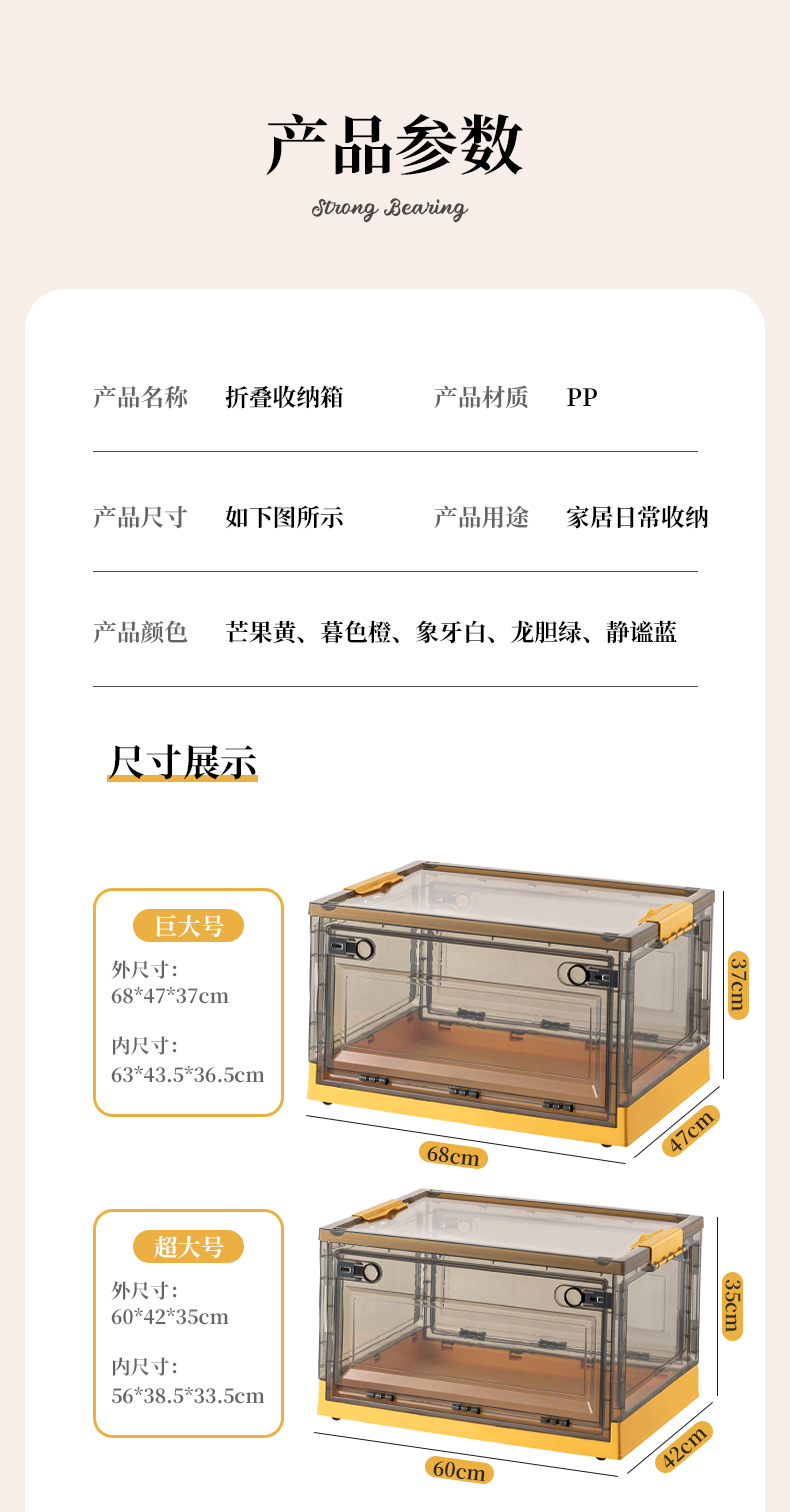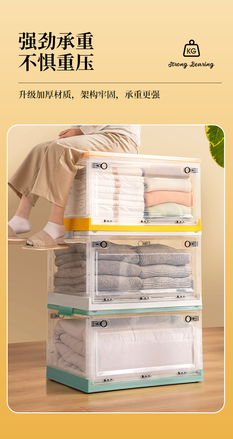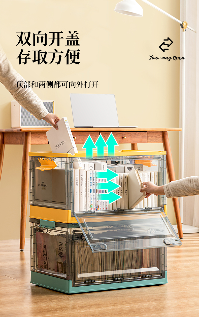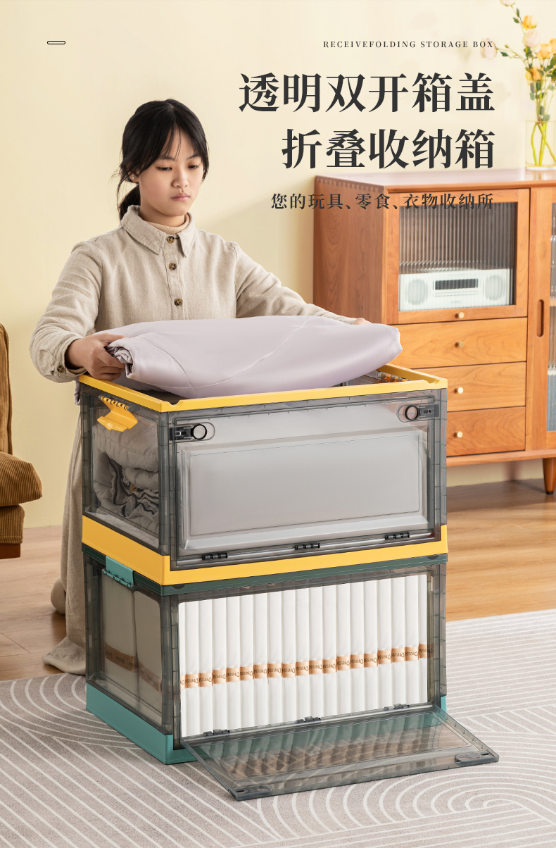 Transparent double-opening box with folding storage function. Brand new storage solution. Highly efficient and space-saving. Foldable storage box that doesn’t take up space when not in use.