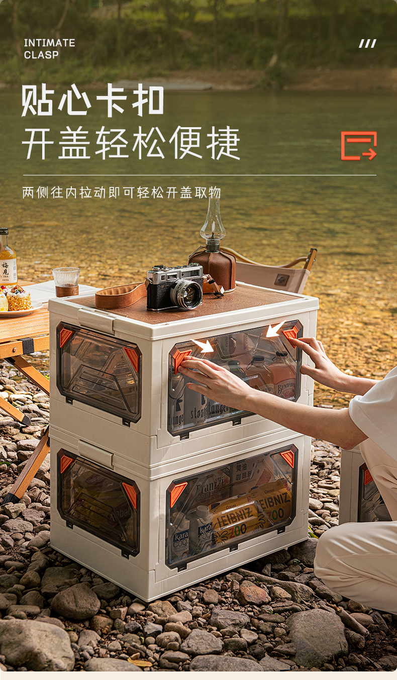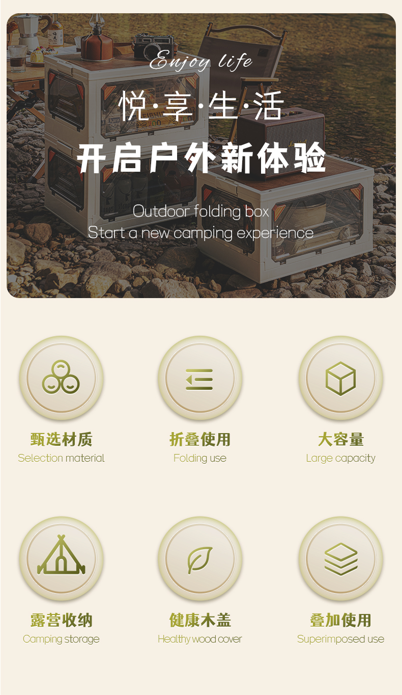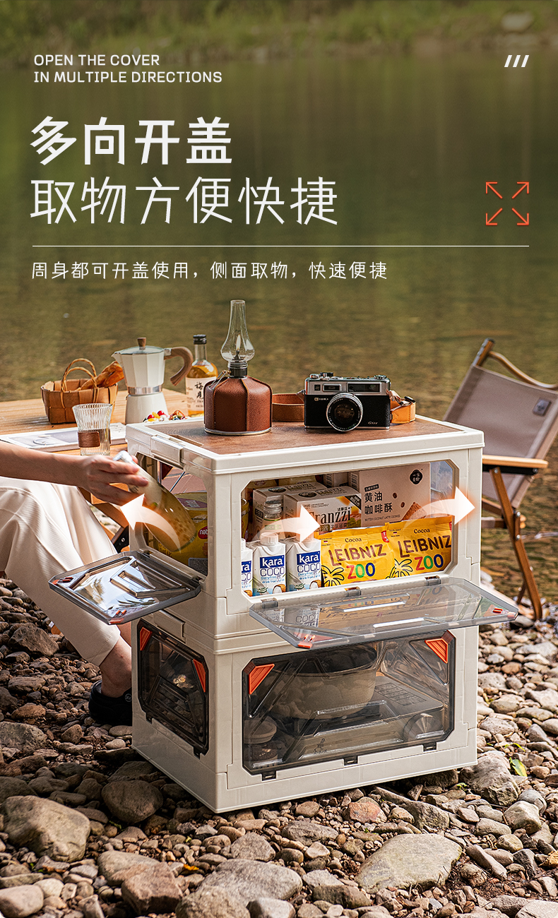 The folding box is an excellent companion for picnics, allowing you to enjoy the beauty of nature. The outdoor folding box has six key features: selected materials, foldable design, large capacity, outdoor storage and packing, healthy wooden cover, and stackable use.