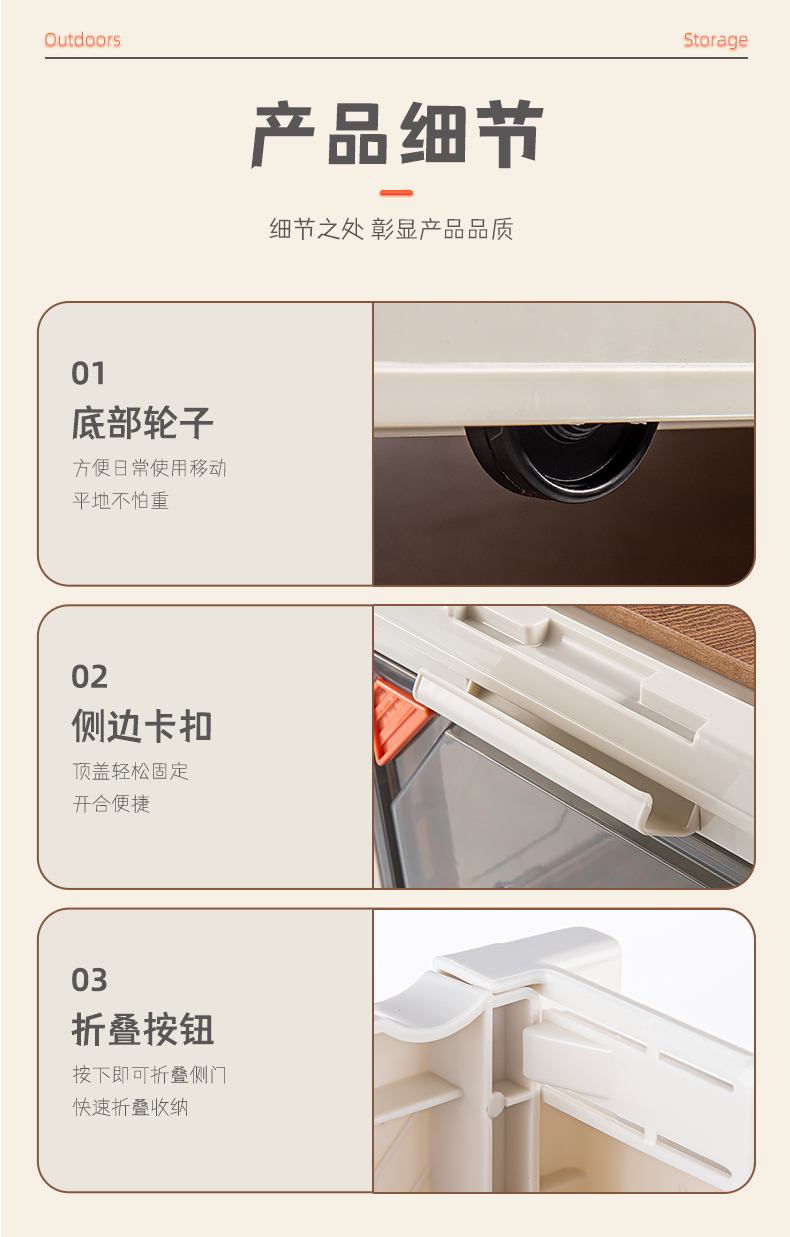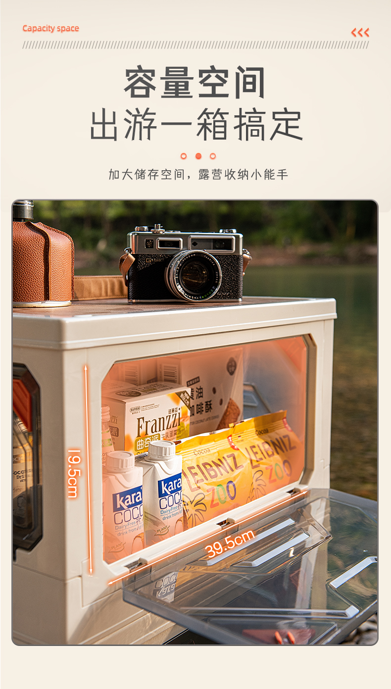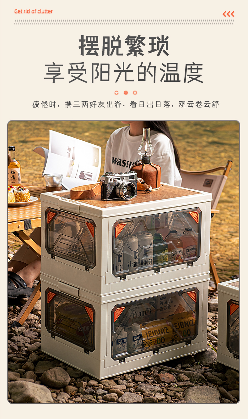 The folding box is an excellent companion for picnics, allowing you to enjoy the beauty of nature. The outdoor folding box has six key features: selected materials, foldable design, large capacity, outdoor storage and packing, healthy wooden cover, and stackable use.