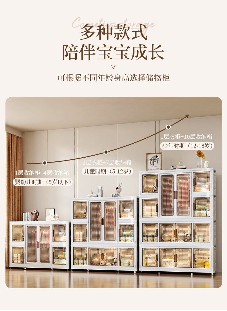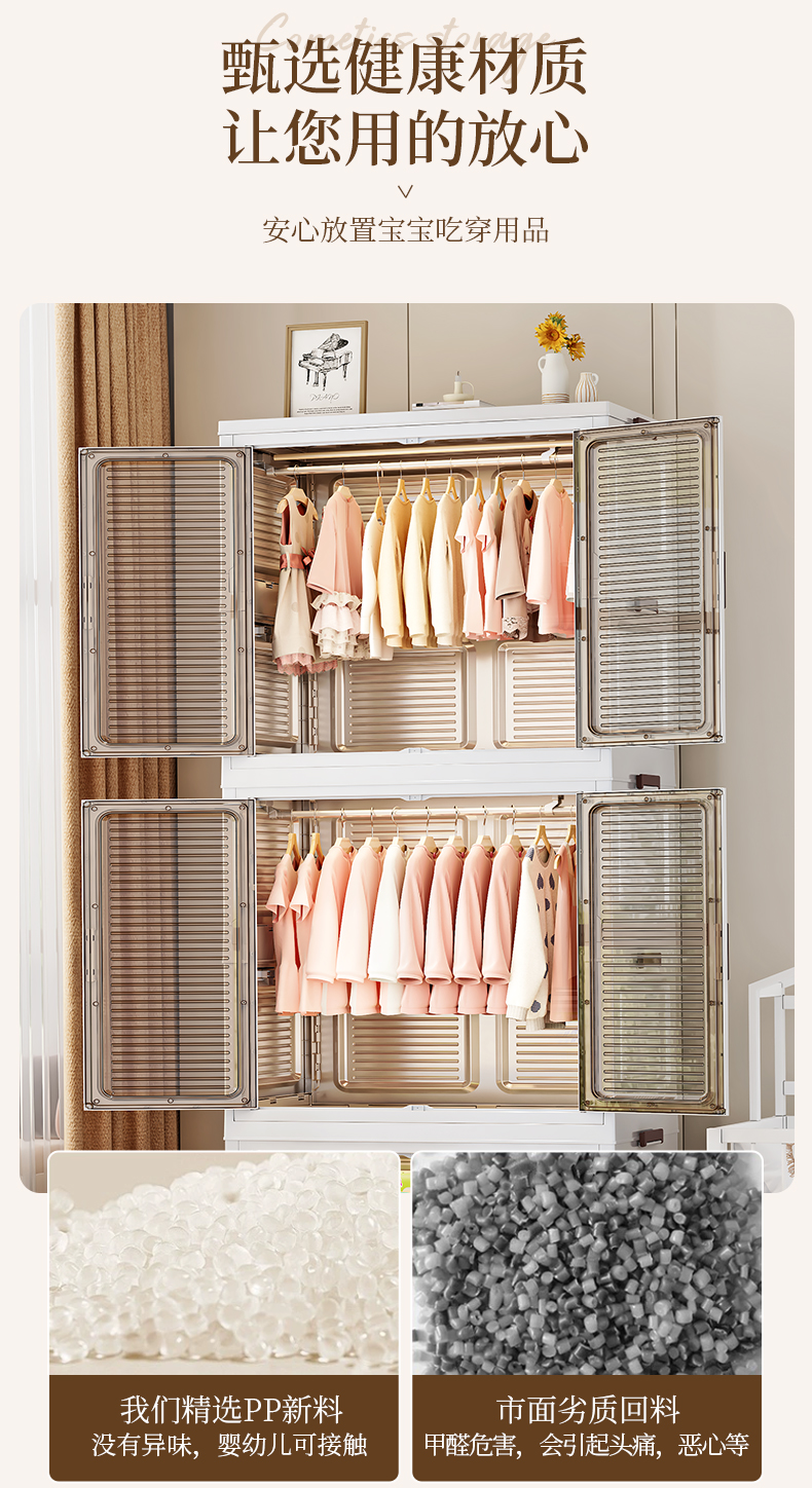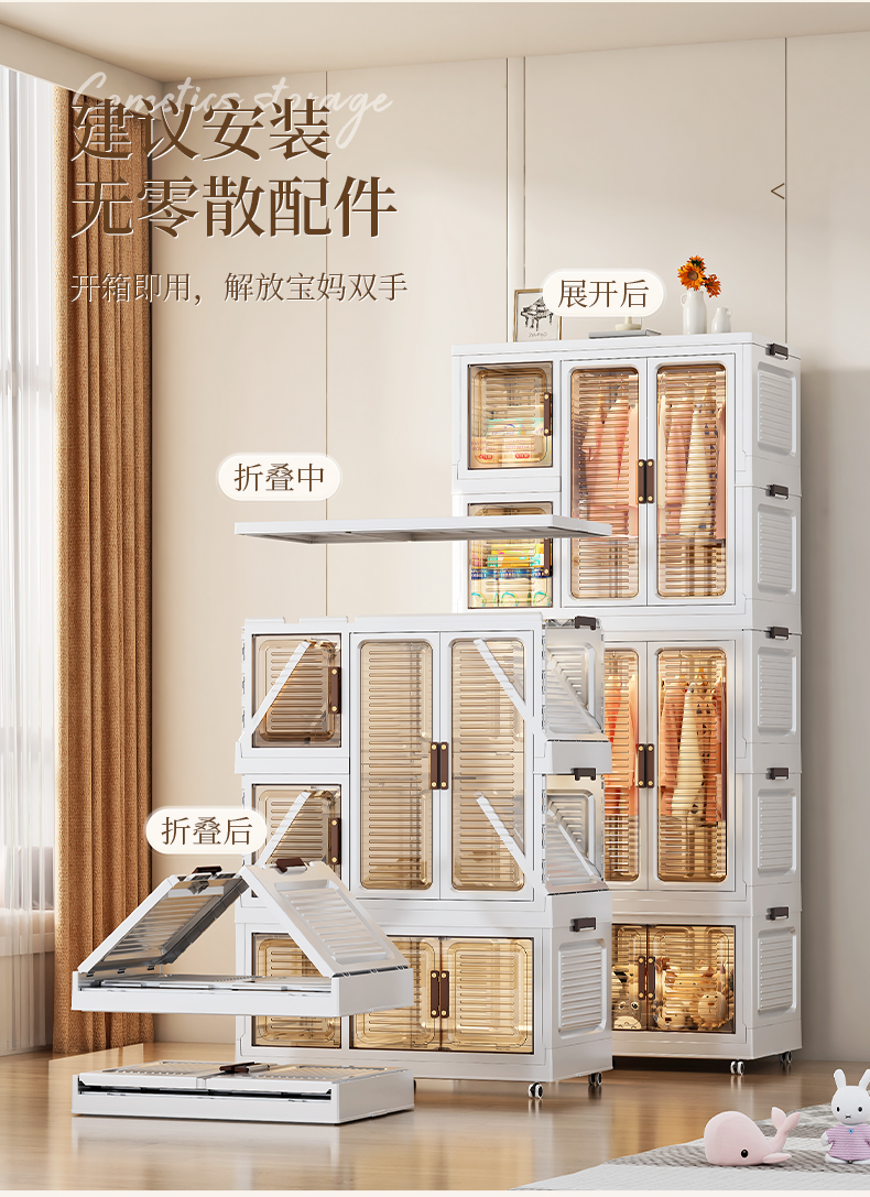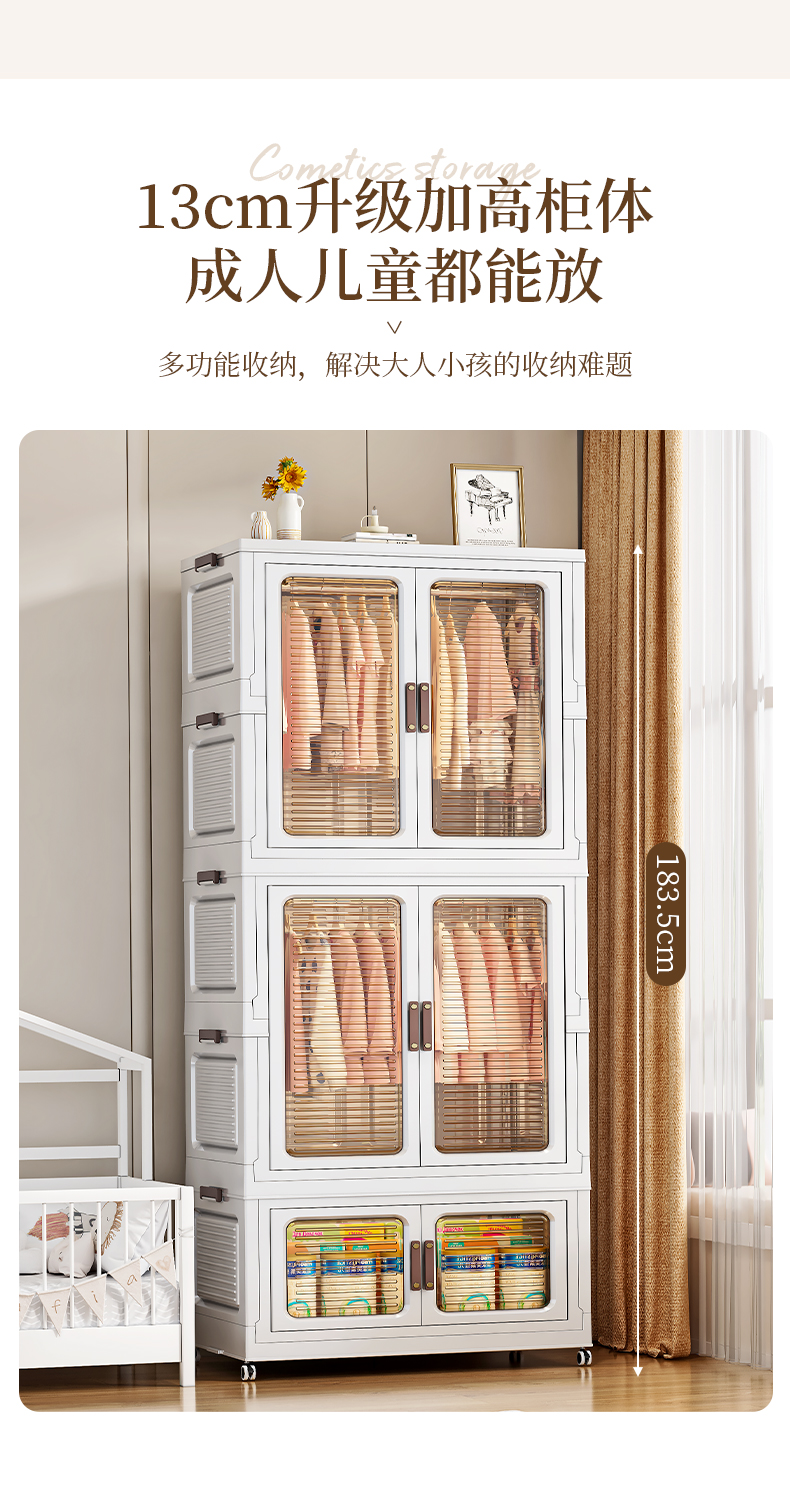 High-quality appearance level free-standing baby wardrobe, not only for storage, but also a little world for your baby. It offers you a different experience. Zone storage, no more chaos: larger capacity, waterproof and dust-proof, magnetic opening and closing, healthy materials.