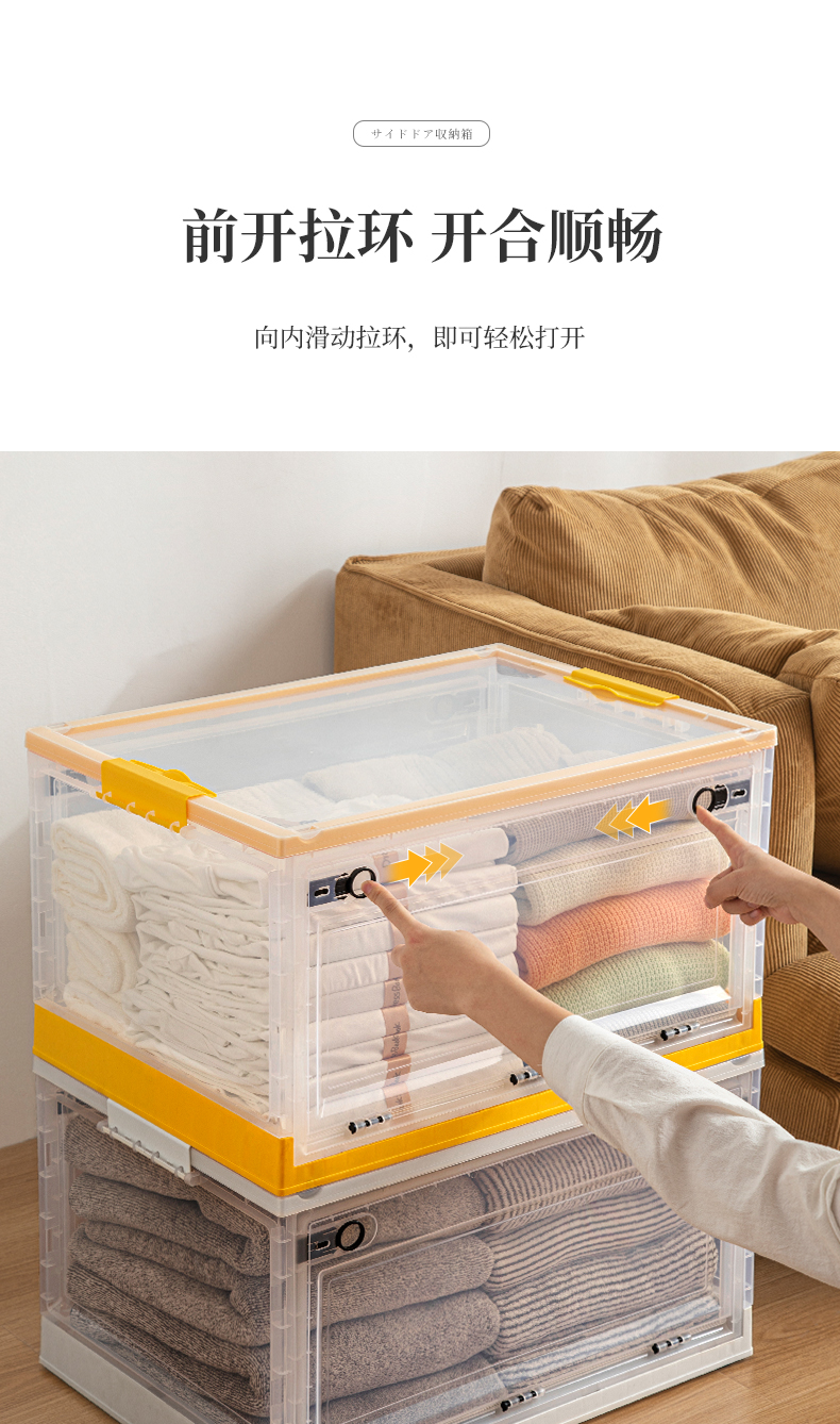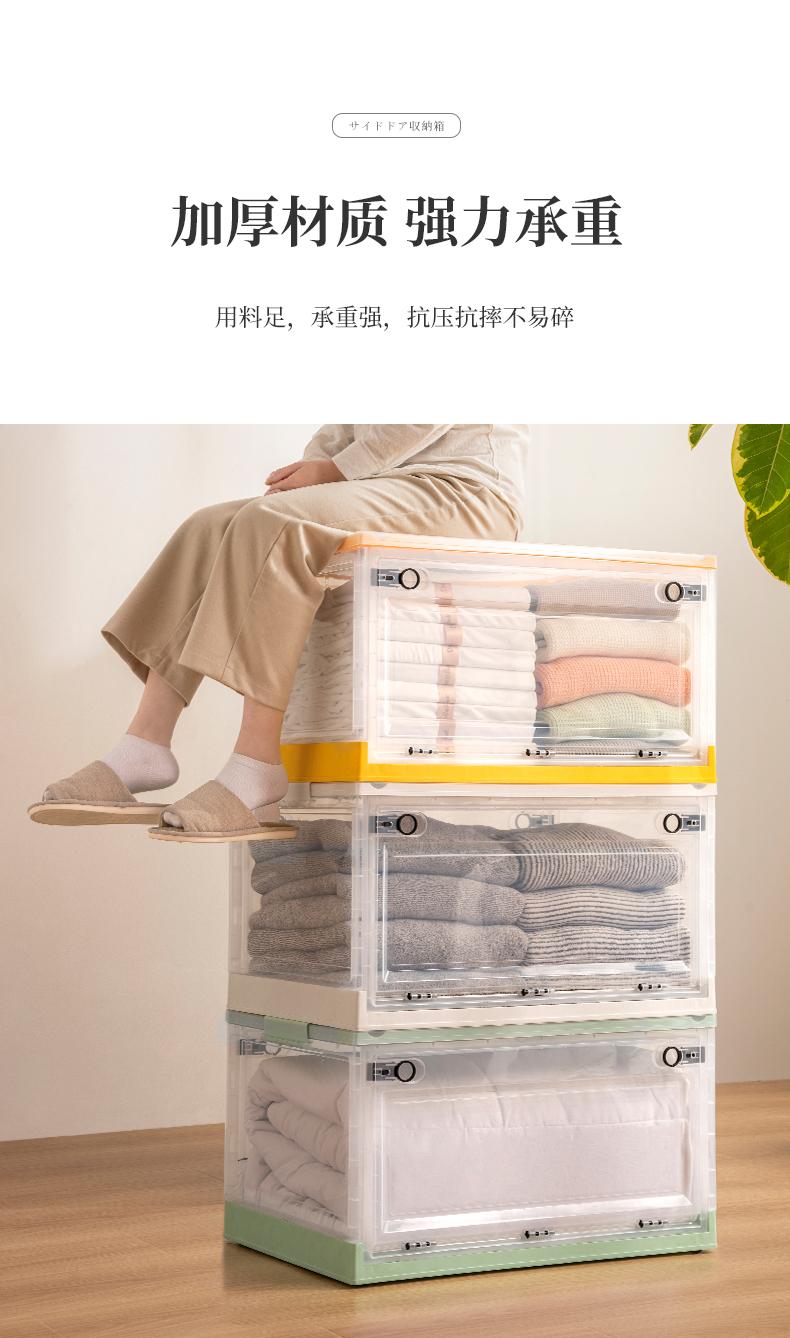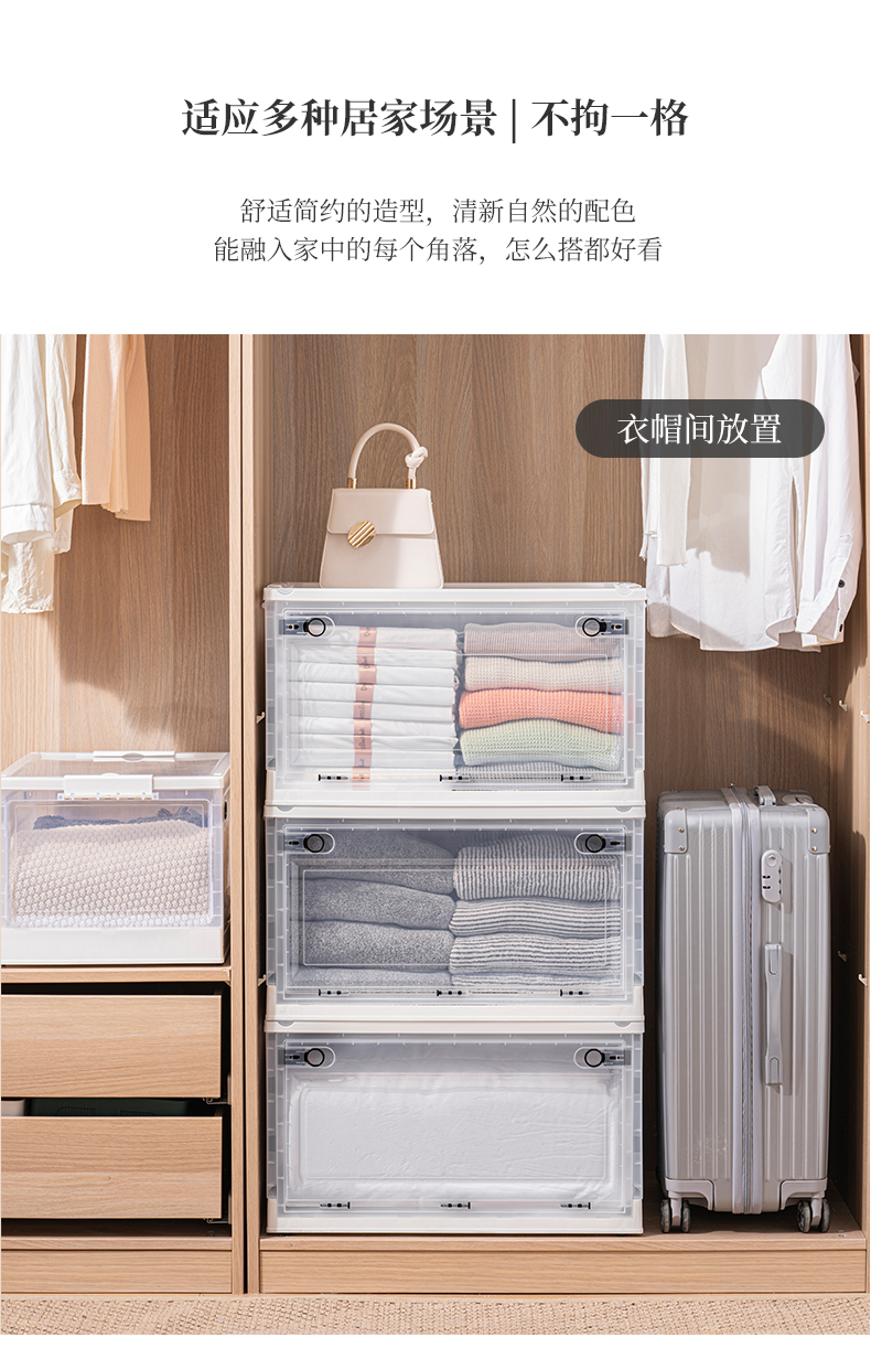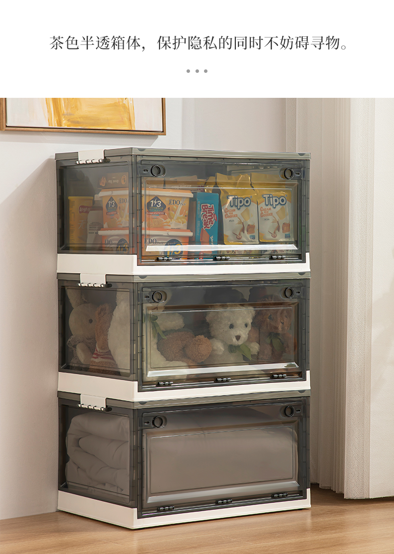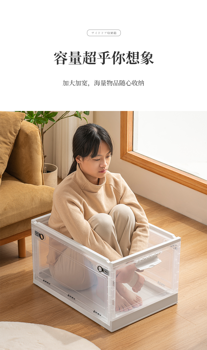Transparent folding box has large capacity, is made of eco-friendly material, has multi-layer storage, and has an opening on the side. It is a new creation for a quality lifestyle, a new choice for home living.
