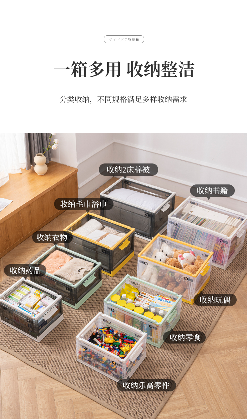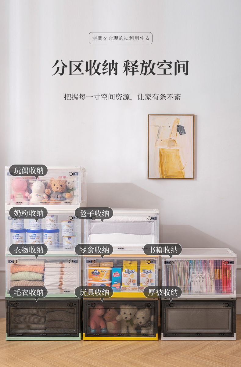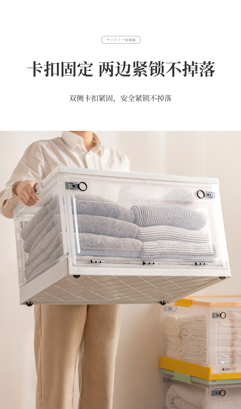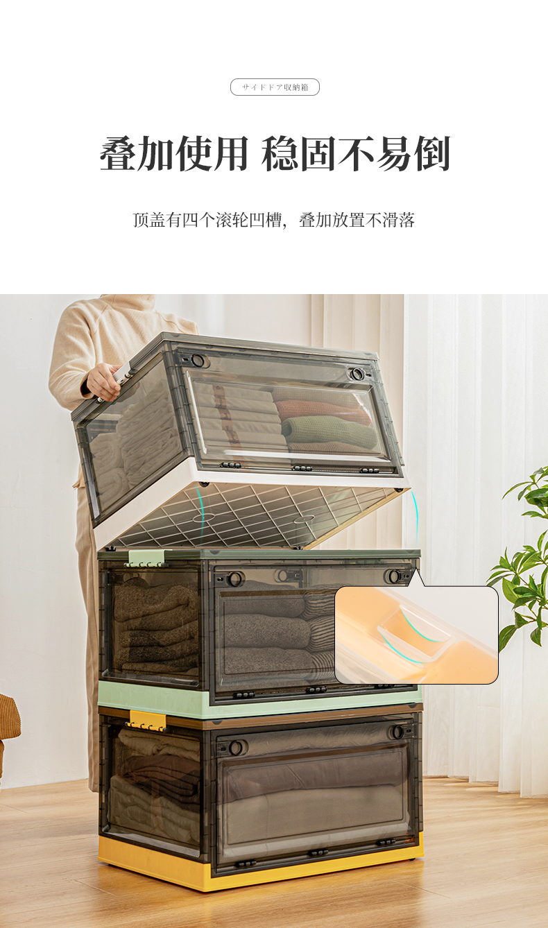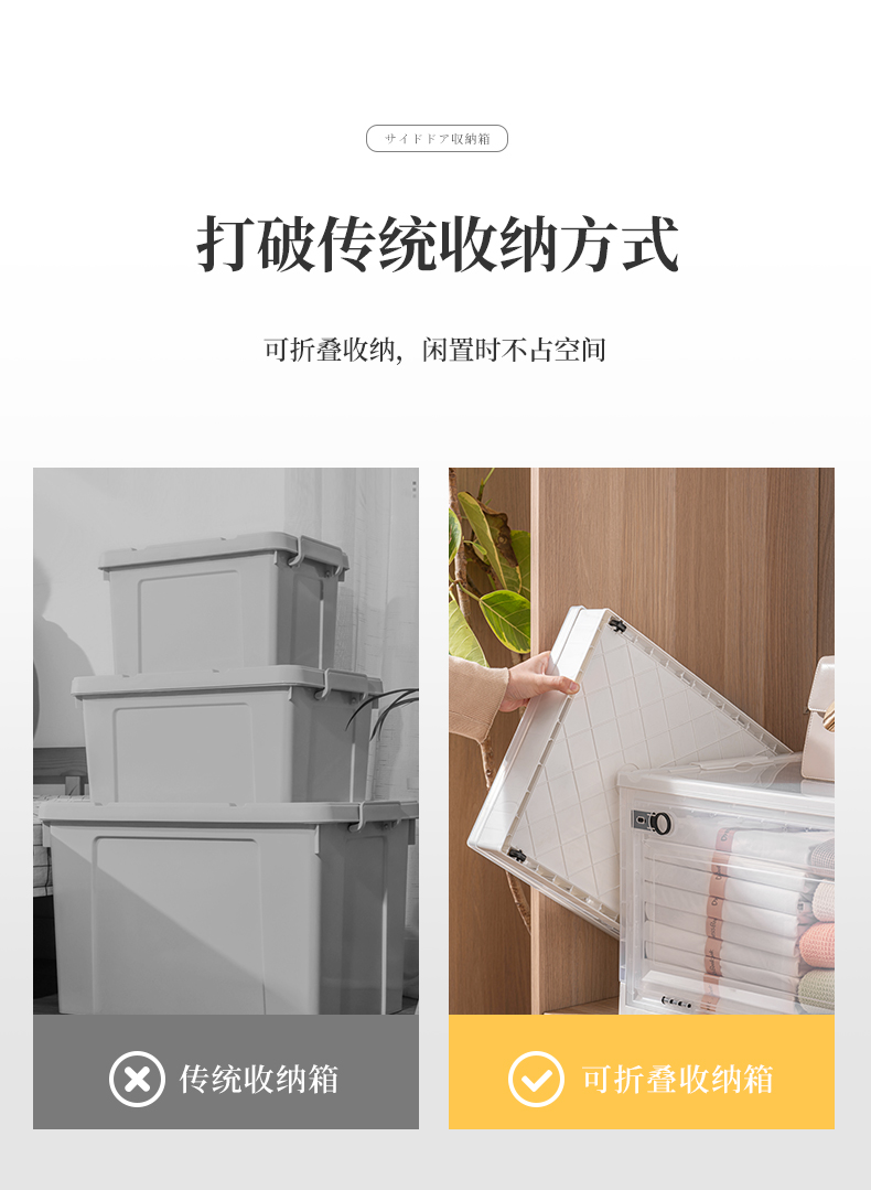Transparent folding box has large capacity, is made of eco-friendly material, has multi-layer storage, and has an opening on the side. It is a new creation for a quality lifestyle, a new choice for home living.